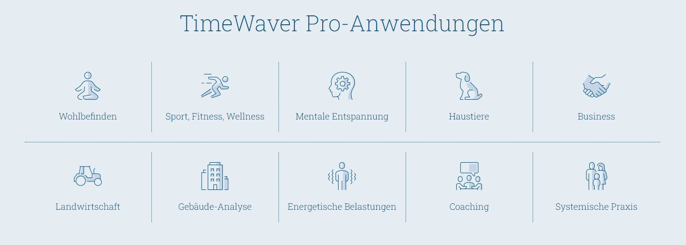 Hinweis: Das TimeWaver Pro System ist nicht zur Diagnose, Behandlung, Heilung, Linderung oder Verhütung einer Krankheit oder eines medizinischen Zustands oder als Ersatz für eine angemessene medizinische Versorgung gedacht. Die Informationsfeld-Technologie ist eine Technologie von TimeWaver. Sie basiert auf der Theorie, dass das Informationsfeld der nicht-materielle Bereich ist, durch den Geist und Materie kommunizieren. Es spiegelt das wider, was wir als die spirituelle Bedeutung der Lebensereignisse betrachten. Die Existenz eines solchen Feldes wird in der wissenschaftlichen Literatur diskutiert. Die Analyse im Informationsfeld dient der Suche nach den Informationsmustern, die zur Harmonisierung des Informationsfeldes beitragen. Zu diesem Zweck wird Inhalten wie beschreibenden Sätzen, die in Listen angeordnet sind, eine Priorität zugewiesen, indem die Daten eines physikalischen Rauschgenerators ausgewertet werden. Nach der Erfahrung unserer Anwender spiegelt die Priorität die Relevanz für den Benutzer wider. Eine Analyse im Informationsfeld entspricht einer Kombination von Faktoren zu dem Zeitpunkt, an dem die Analyse durchgeführt wird, einschließlich der Intention des Anwenders. Eine Analyse zu einem anderen Zeitpunkt kann aufgrund von Änderungen der Umgebungsvariablen zu einem anderen Ergebnis führen. TimeWaver hat in kontrollierten und randomisierten Gruppen von Teilnehmern unverblindete Vorher-/Nachher-Umfragen durchgeführt. Diese Umfragen lassen darauf schließen, dass das Wohlbefinden der Teilnehmer nach der Anwendung höher war. Wir führen dies auf eine Harmonisierung des Informationsfeldes zurück, bei der die Lebensenergie auch Chi (oder Qi oder Prana) genannt wieder in Fluss gebracht wird. Dies ist jedoch nicht durch unabhängige Studien bestätigt worden.
